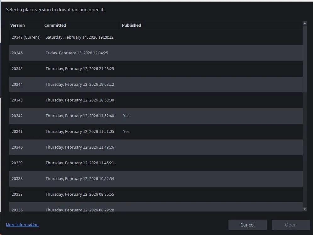 If Roblox is able to address this issue, it would improve my development experience because I could stop spending hours scrolling through an unusable list and stop maintaining tens of gigabytes of manual backups. Version History would go from something I almost never use (because it’s too painful) to something I rely on daily. This would save real development time on every single project, especially long-running ones, and it would benefit every developer on the platform regardless of skill level or team size.