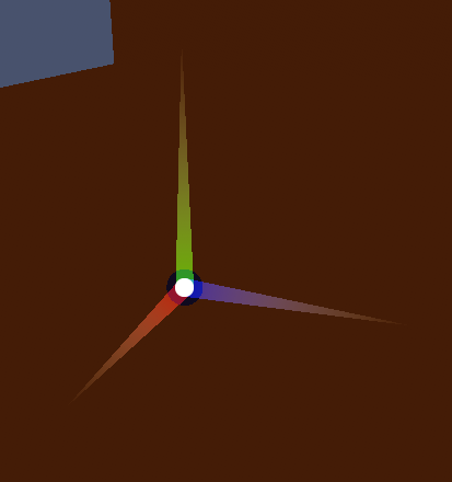 The origin shows the up vector (green), right vector (red), and look vector (blue).