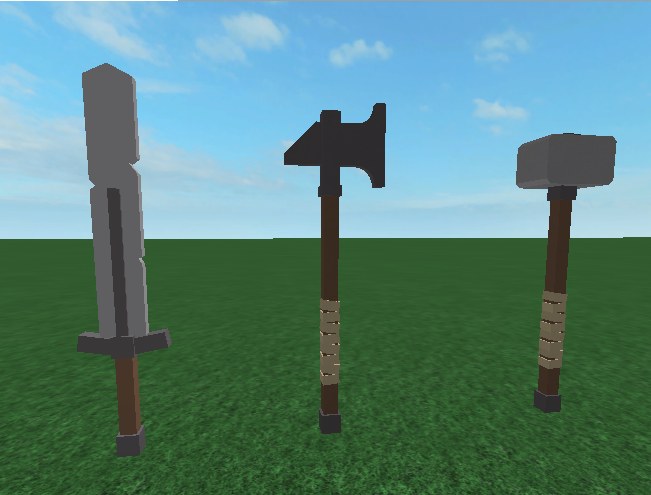right now, i finished a somewhat basic two-handed weapon pack, which contains a claymore, a warhammer and a battleaxe.