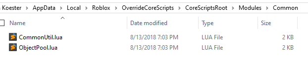 So I’ve got the github repo cloned into Roblox/OverrideCoreScripts with no changes. Here’s my settings: