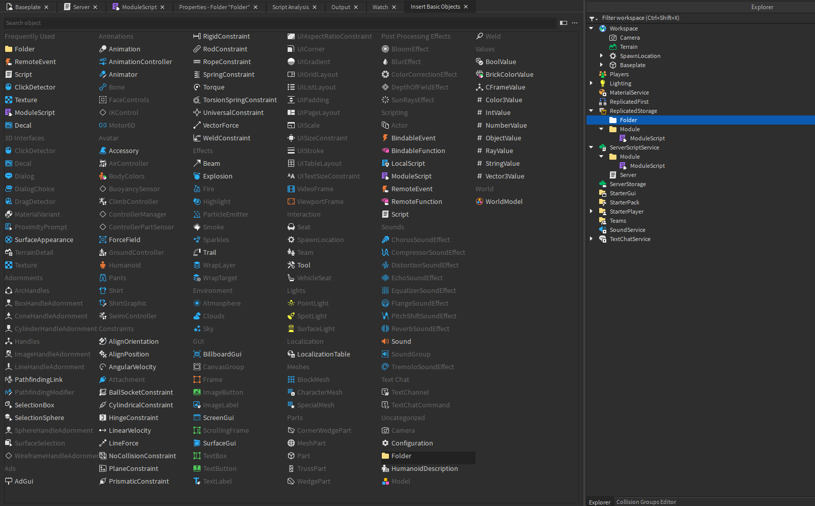 On the other hand, Script is highlighted in Workspace, although it’s generally best to have most lua source containers in ServerScriptService, ReplicatedStorage, StarterPlayerScripts…
