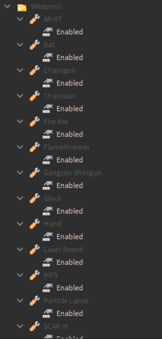 In the game, all the weapons “Enabled” value is set to false by default, so i have to turn it on everytime a player fairly equips the weapon. I can assure you, every weapon in the folder has this value.