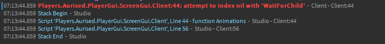 What the Infinite yield means is that the script cannot find what you have requested it to, so your issue is on Line 6 make sure that the UI object you’re trying to reference is in the right place and that it isn’t being moved by other scripts.