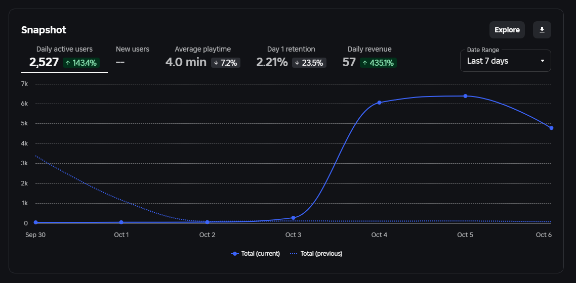 I was looking at the snapshot analytics for my game but then I realized the white benchmark line for daily active users are gone what does that mean?