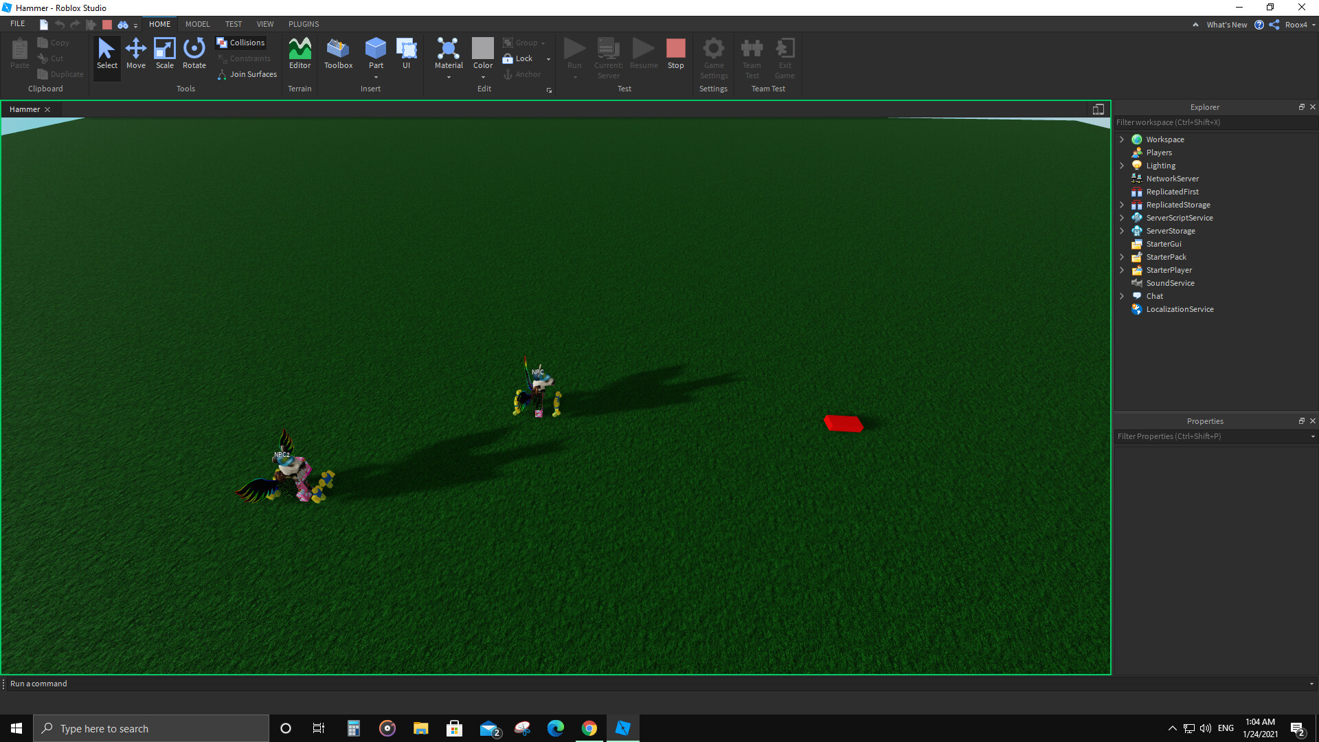 Now, I was expecting when I hit run in the studio, both of my NPCs would go after the part but for some reason, which I don’t know, only ONE of my NPCs would go after that part.