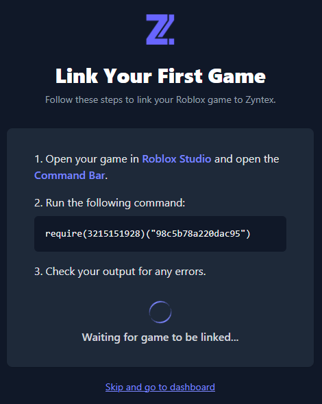 local Zyntex = require(path.to.zyntex)("YOUR-GAME-TOKEN")